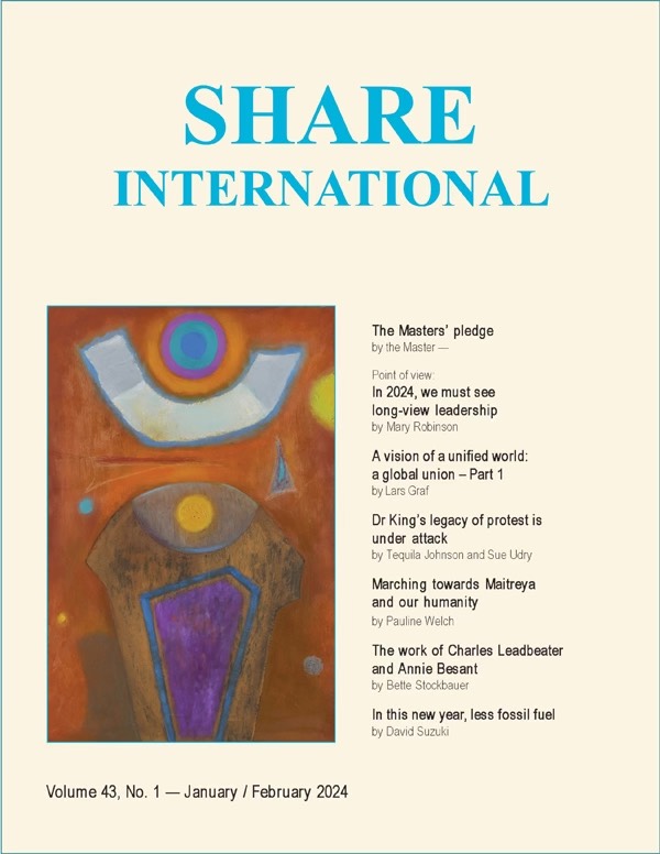 Share International USA provides information about the World Teacher Maitreya and the importance of implementing global sharing, justice and cooperation as preludes to an era of peace and entrance into ‘the new country of Love’.